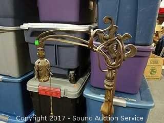 Lot #0198: Antique Wrought Iron & Brass Floor Lamp 59"