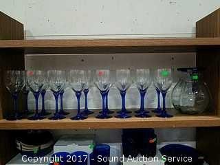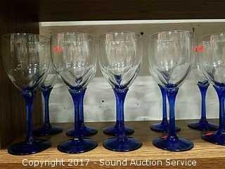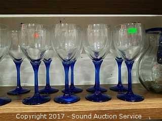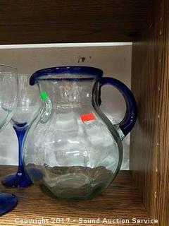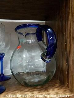 Lot #0182: Beautiful Blue Art Glass Stemware & Pitcher
