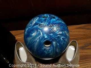 Bowling ball is Galaxie 300. Shoes are Charger, leather, approx. size 9.