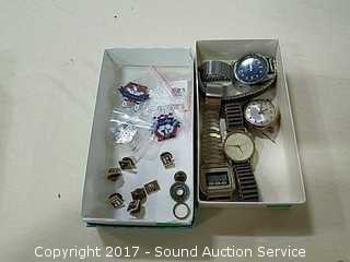 Lot #0121: Collection of Lapel Pins & Mens Watch Parts