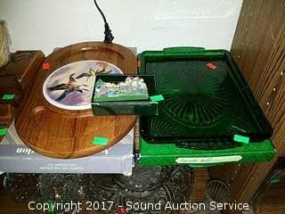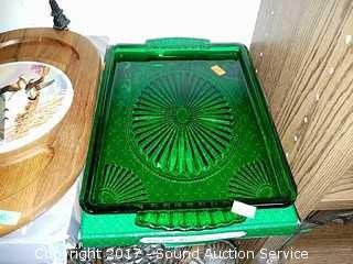 Lot #0167: Emerald Green Avon Tray, Cheese Board & Magnet