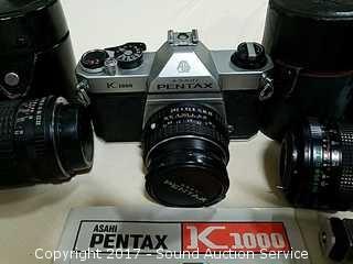 Lot #0187: Pentax Asahi K1000 35mm Camera w/Lenses & Case