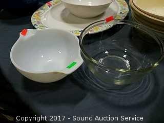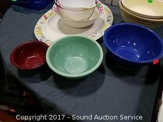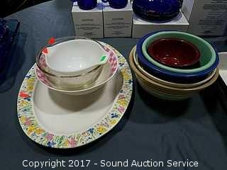 Lot #0147: Stoneware Mixing Bowls, Platter & More