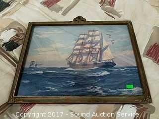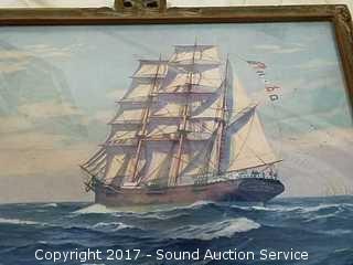 Lot #0027: Vtg. Framed Amy Turner Sailboat Print