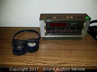 Lot #0164: Vtg. Headphones & AM/FM Clock Radio