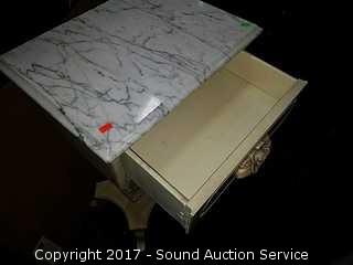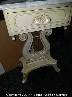 Lot #0195: Vtg. Italian Marble Top Lyre Base Side Table