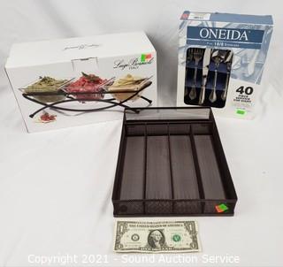 Lot #0058: 40pc Flatware Set w/Tray & 4pc Bowl Server