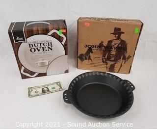 Lot #0057: Like New Cast Iron 3qt Dutch Oven & Pie Pan