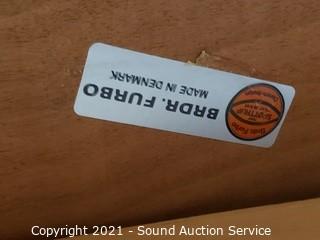 Lot Details: Slide out leaves. By BRDR-Furbo Denmark. Some wear to the finish. 29" H x 33.5" x 51" table with 20" leaves. One corner of the table is missing piece of trim.