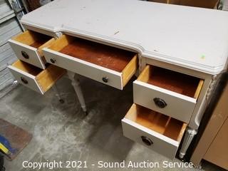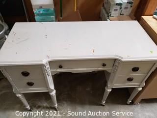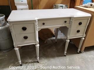 Lot #0452: Vtg. 5-Drawer Vanity/Desk w/Wood Casters