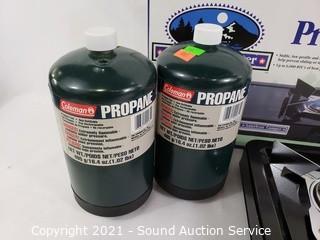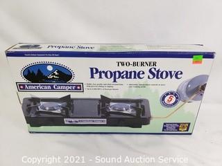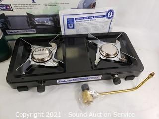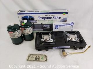 Lot #0398: New 2-Burner Propane Stove & 2 Bottles Propane