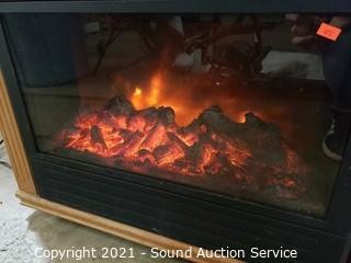 Lot #0086: Oak Framed Rolling Elec. Fireplace - Works