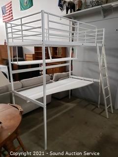 Lot #0072: White Steel Desk Bed Combo