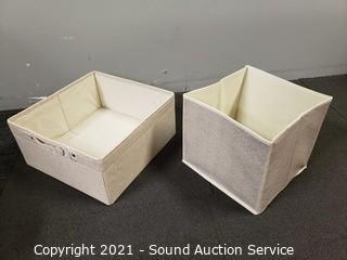 Lot Details: Storage boxes are fabric, collapsible, 11" x 11". 2-" H x 16" fabric laundry tote.