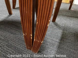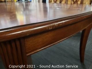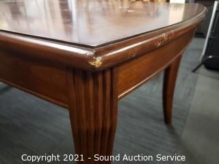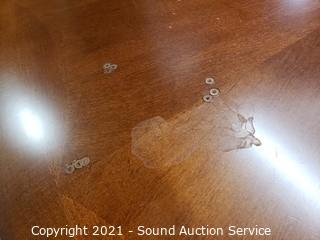 Lot Details:  Top has some melted spots on the finish, some  minor knicks, dings. 30" H x 38" x 53" with  12" leaf.