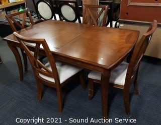 Lot #0002:     Nice Cherry Finish Dining Table w/4 Chairs & Leaf