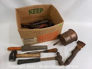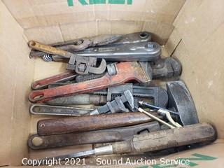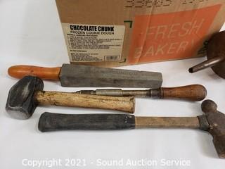 Lot Details: Wrenches, mallet, hammers, snips & more.