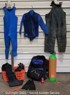 Lot #0259: Various Scuba Gear, Tank, Wetsuits