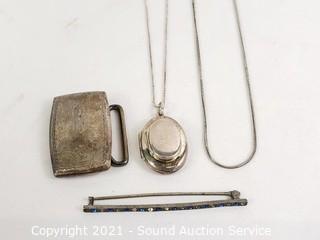 Lot #0234: Vtg. Hickok Sterling Belt Buckle, Locket & More