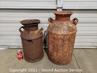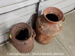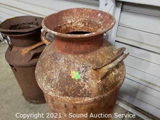 Lot #0293: 2 Rustic Yard Art Milk Cans