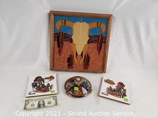 Lot #0126: 4 Piece Native Tile & Pottery Decor