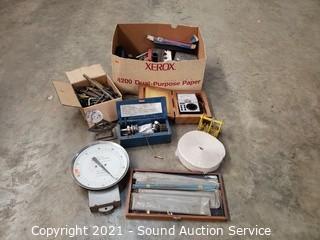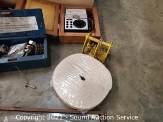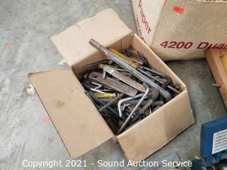 Lot Details: Hex key wenches, hacksaw blades, nylon strap, 20lb scale, torpedo level & other tools.