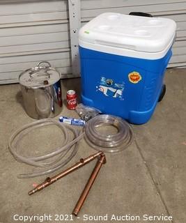Lot #0336: Cooler Repurposed for Distilling, Tubes & More