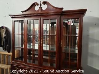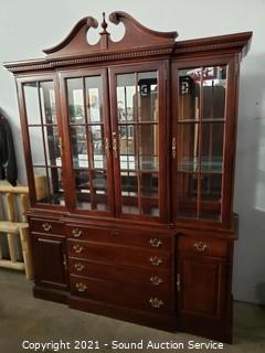 Lot #0070: Nice Lighted, Mirrored Cherry Finish Hutch
