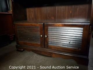Lot Details: Adjustable shelves. Some wear to the finish. 63" H x 36" W x 11" D.
