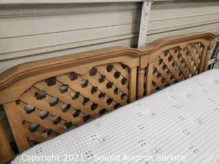 Lot Details: Mattress is in excellent condition, memory foam 13" mattress firm. Steel frame with lattice wood headboard. 40" H x 64" W headboard.