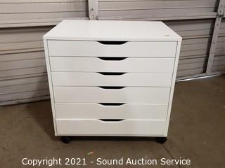 Lot #0370: White Veneer 5-Drawer Rolling Organizer