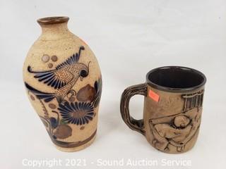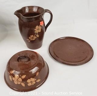 Lot Details: Tureen, pitcher, mug, vase, cheese plate.