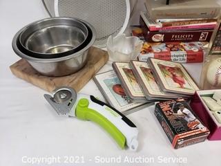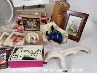 428 lots including: Nice Sealy Twin Bed, Whittier Bookcases, 2 Seat Pedal Buggy, Curio Cabinets, Vanity Dresser, Corner Cabinet, Vtg. Secretary Cabinet, Pendleton Shirts, Vtg. Armoire Wardrobe, Portable Air Conditioner, Vtg. Copper & Brass Equestrian Weathervane, MOP Inlaid Oriental Art Panels, Gas Generator, Marantz Speakers, Saxophone, 1960's Posters, HO Scale Collectible Train Cars, Husqvarna Viking Sewing Machine, Fitz & Floyd Kittens of Knightsbridge Collectibles, 13pc Cutco Knife Block Set, Bose Speakers, Handcrafted Brick Characters, Stetson Hats, Crystal Ware, Vintage Glassware, Dept. 56 Porcelain Village Accessories & So Much More!!!