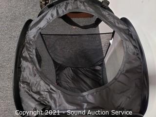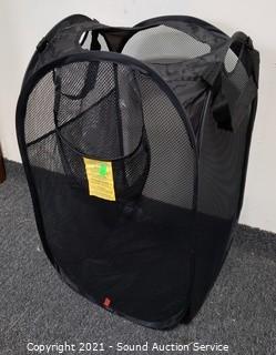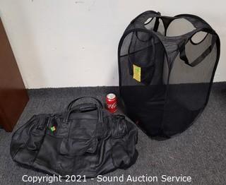 Lot #0259: Folding Mesh Laundry Hamper & Leather Athletic Bag
