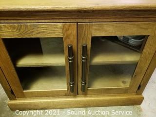 Lot #0044: Nice Textured Oak Glass Front Console Cabinet