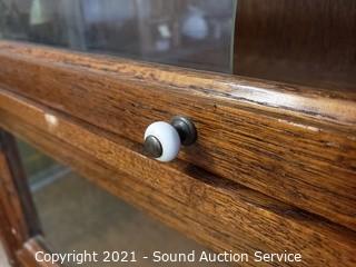 Lot Details: One section glass is broke. 60" H x 36" W x 12" D.