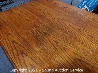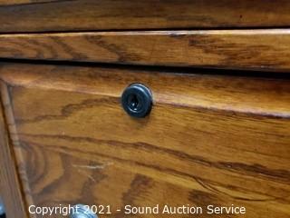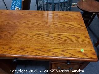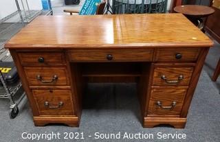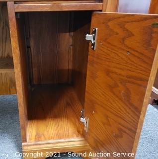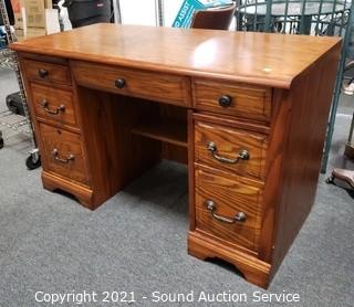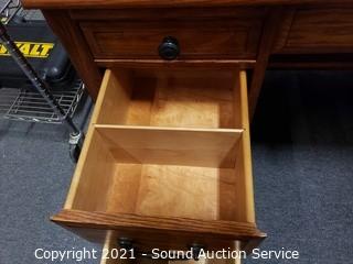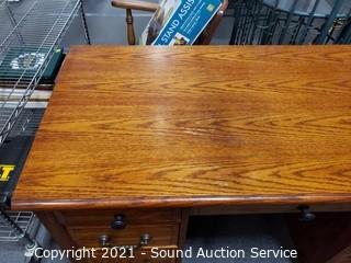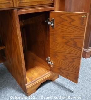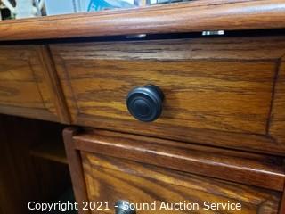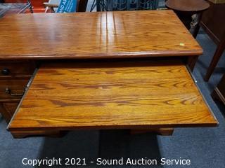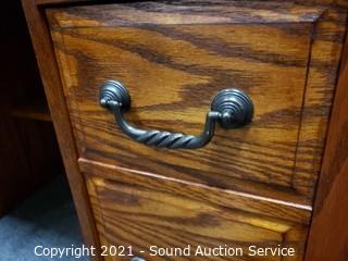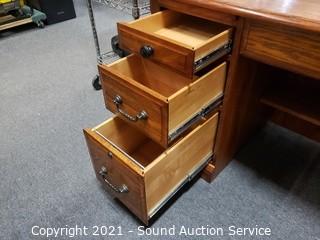 Lot Details: Keyboard drawer, place for tower, ball bearing drawer guides, locking file drawer (no key). Some minor wear to the top. 30" H x 48" W x 23" D.