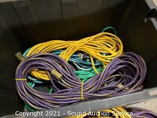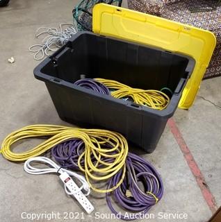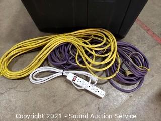 Lot Details: Approx. 50ft Extension cords. 15" x 30" x 20" tote.