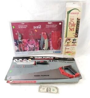 410 lots including; Tons of great tools, Rolling Tool Chests, Kubota Riding Lawn Mower, 2002 Dodge Durango, Drill & Driver Bit Sets, Power Tools, Air Tools, Cordless Tools, Vtg. Makeup Vanity, HO Scale Model Train Cars & Locomotives, Coleman Lanterns, BB & Pellet Guns, Charcoal Grill Smoker, Spotting Scope, Loaded hardware Organizers, Hitachi Table Saw, Various Hand Tools, Screwdrivers, Pliers, Saw blades, Clamps, Levels & So Much More!!!