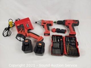 Lot #0075: Milwaukee 14.4v Drill, Impact & Light Kit