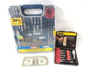 Lot Details: Includes Ryobi 60pc Drilling and Driving Accessory Kit and Stanley Power Driving Set. Both appear like new and complete.
