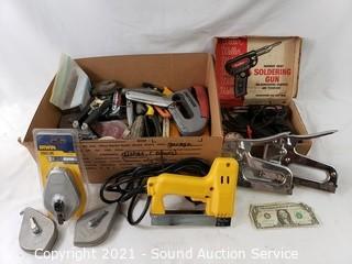 410 lots including; Tons of great tools, Rolling Tool Chests, Kubota Riding Lawn Mower, 2002 Dodge Durango, Drill & Driver Bit Sets, Power Tools, Air Tools, Cordless Tools, Vtg. Makeup Vanity, HO Scale Model Train Cars & Locomotives, Coleman Lanterns, BB & Pellet Guns, Charcoal Grill Smoker, Spotting Scope, Loaded hardware Organizers, Hitachi Table Saw, Various Hand Tools, Screwdrivers, Pliers, Saw blades, Clamps, Levels & So Much More!!!