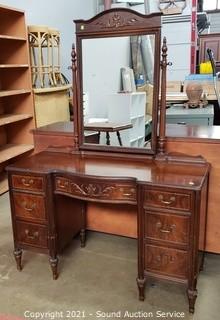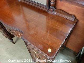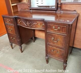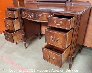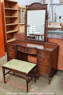 Lot #0106: Vintage Mahogany 7-Drawer Vanity w/Bench