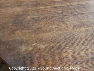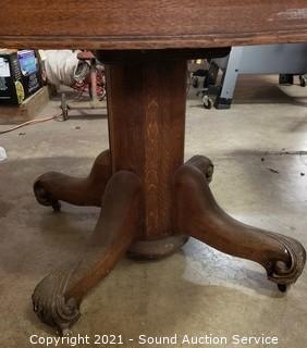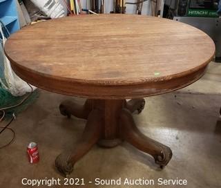 Lot Details: Has space for a leaf, does not come with one. Some wear to the finish. 29.5" x 45" diameter.