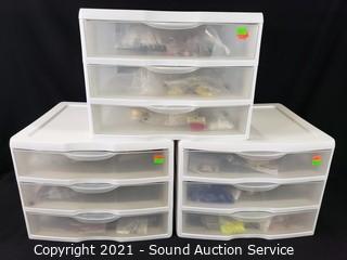 Lot #0215: (3) 3-Drawer Organizers w/Crafting Supplies