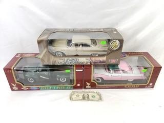 Lot Details: Motor Max 1958 Plymouth Fury, Road Legends 1948F-1 Pick Up, Road Legends 1955 Ford Fairlane Crown Victoria. All like new in original packaging.