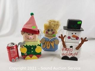 Lot Details: Signed by artist Deep & Dated, refer to photos. 9" H x 11" to 6 to 10" W. Elf, Angel & Snowman.