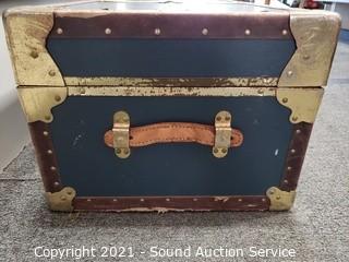 Lot Details: 13" H x 31" x 17". Some wear. Leather handles intact.