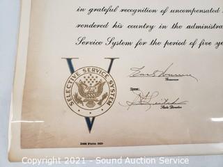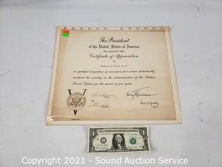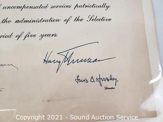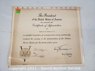 Lot #0148: Harry Truman Presidential Appreciation Certificate