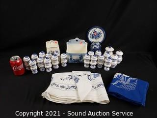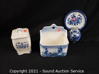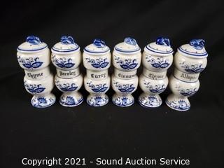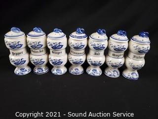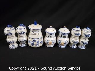 Lot #0140: Vtg. Delft Blue Spice Shakers & Kitchenware